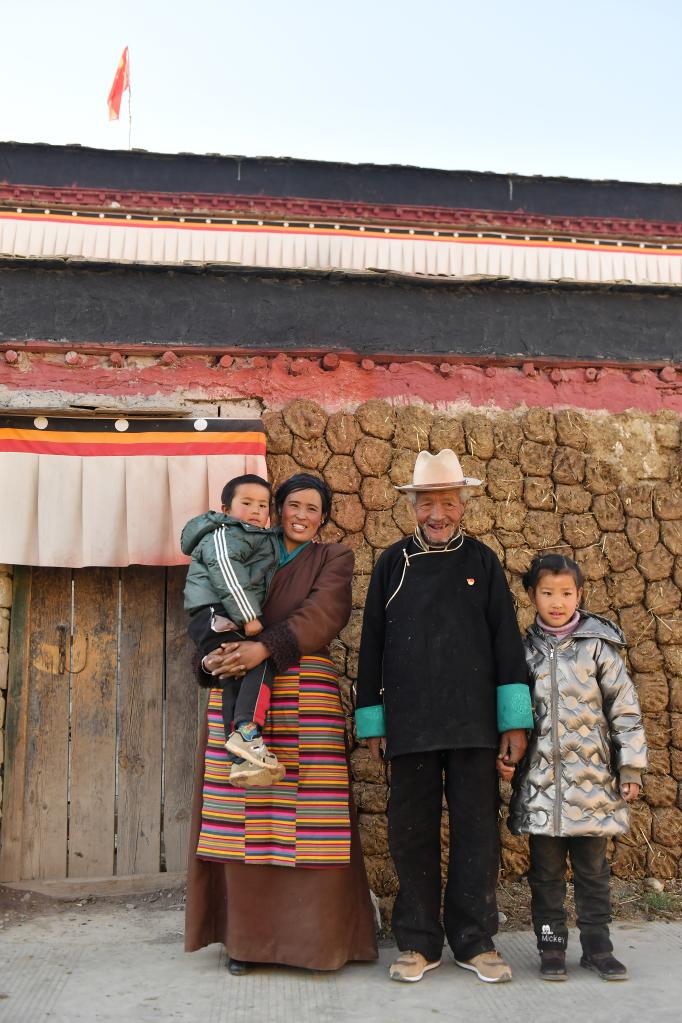 日喀则市江孜县江热乡加堆村的达国杰(右二)和儿媳妇、孙子、孙女的合影。(新华社记者孙瑞博 摄)