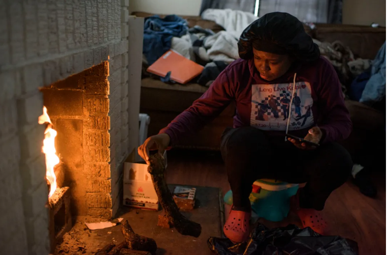 当地时间2月17日,得克萨斯州民众在家中烧木取暖。