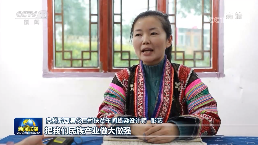 贵州黔西县化屋村扶贫车间蜡染设计师 彭艺:把我们民族产业做大做强,让我们苗族同胞的生活,过得像我们蜡染刺绣一样精彩。%26nbsp;%26nbsp;