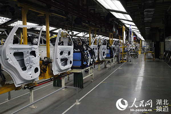东风风神公司生产线上,工人们正加班加点赶工。人民网 郭婷婷摄