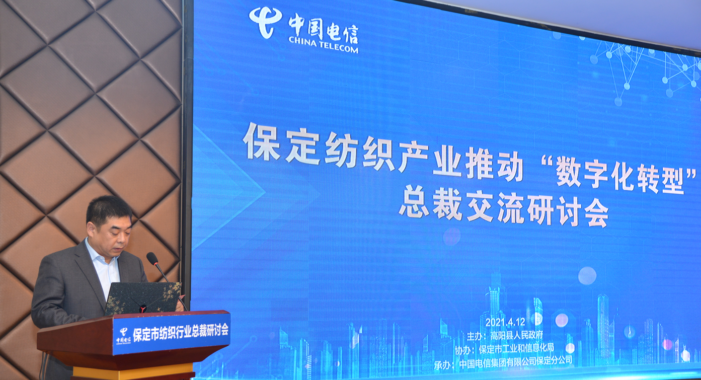 此次我市纺织产业推动“数字化转型”总裁交流研讨会,由高阳县政府主办,市工业和信息化局协办,中国电信集团有限公司保定分公司承办。会上,保定电信主讲人韩龙以“中国电信助力高阳纺织产业数字化转型”为题,为当地纺织行业的总裁们详解数字化转型的路径、电信云网融合的能力和场景化的解决方案,强调数据驱动有助于企业实现以客户为中心、业务流程智能化、线上线下协同发展、上下游产业共同发展,赢得与会者的高度认同。中国电信生态合作伙伴“金蝶软件”“新核云”“西格玛通讯”“薇深文化”分享运营管理、生产制造、品牌提升等方面的智能化改造和数字化转型方案。