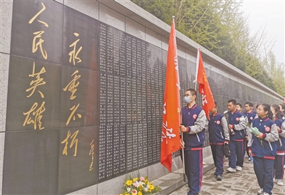 育德中学开展远足祭扫烈士墓活动。 刘建政 摄