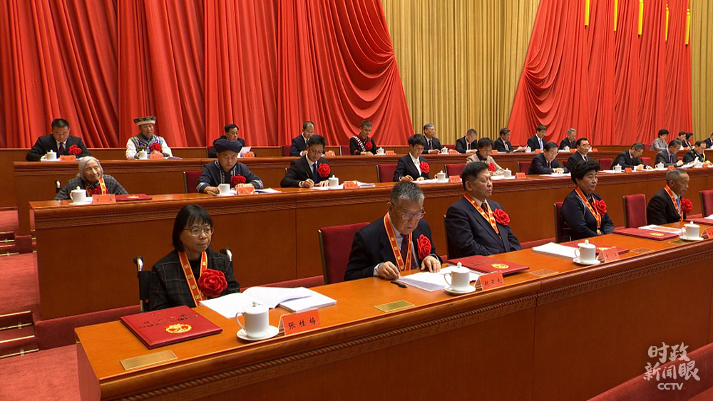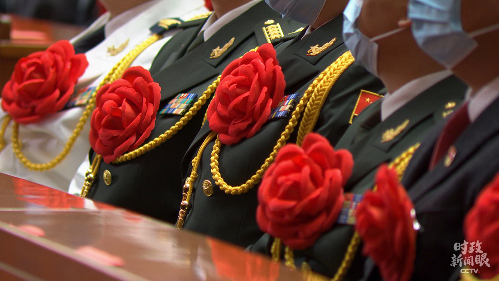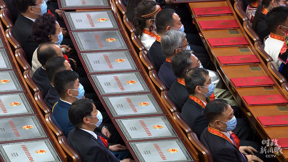 △当天受到表彰的代表均佩戴红花。(总台央视记者杨波拍摄)