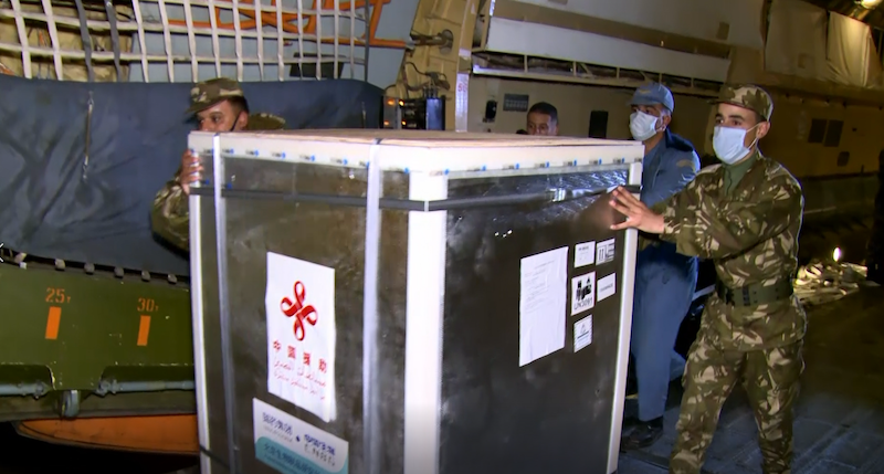 中国援助阿尔及利亚的一批国药集团新冠疫苗当地时间24日晚抵达阿尔及利亚布法里克军用机场。阿尔及利亚新闻部长奥马尔·贝勒赫莫尔(belhimer ammar)、卫生部长阿卜杜拉赫曼·本布齐德(abderrahmane benbouzid)及中国驻阿大使李连和等出席了在机场举行的疫苗交接仪式。