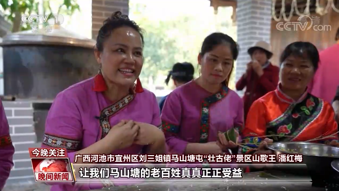广西河池市宜州区刘三姐镇马山塘屯“壮古佬”景区山歌王 潘红梅:让我们马山塘的老百姓真真正正受益,幸福感油然而生。