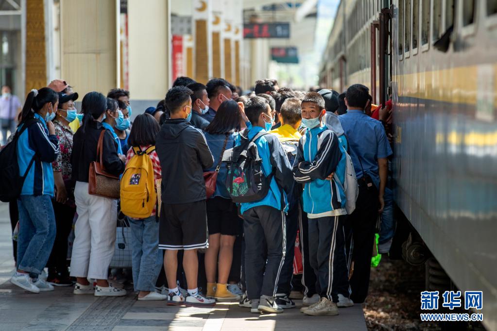 放学的学生和其他旅客在成昆铁路西昌站准备乘坐5634次列车回家(4月15日摄)。