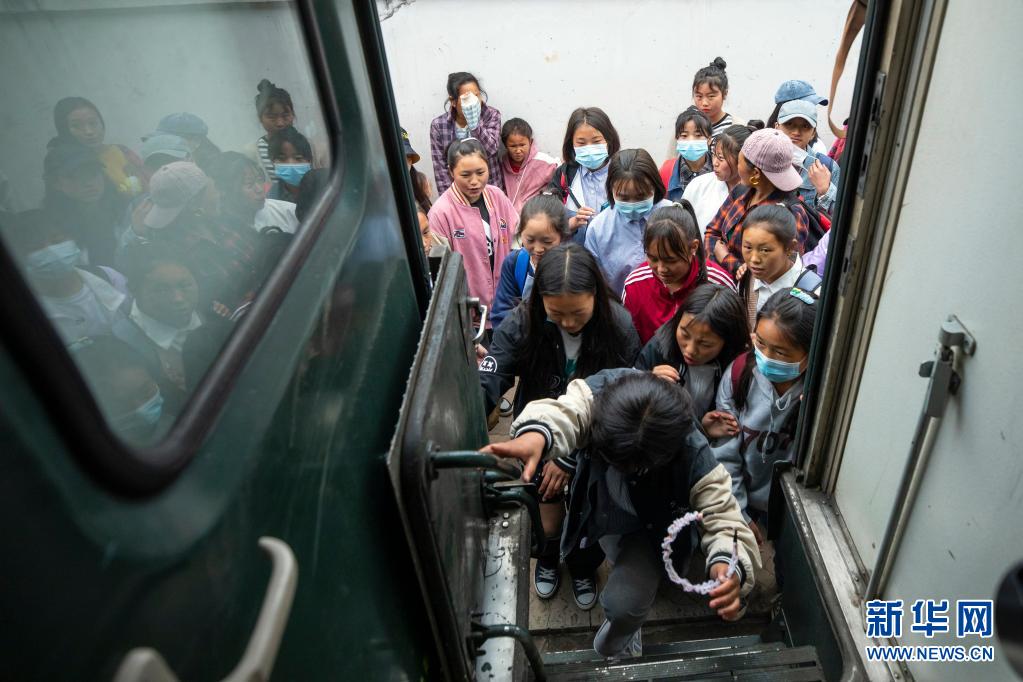 在成昆铁路尼波站,学生们乘坐5633次列车前往学校(4月11日摄)。