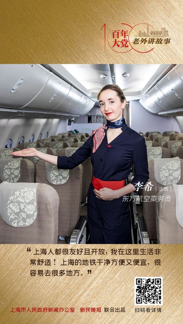 今年是法国姑娘李希来上海的第七年,也是她成为东方航空乘务员的第四年,这些年,她总在上海和巴黎两座城市间往返。辗转之间,李希体会着两座城市不同的魅力。最让她欣喜的是,通过频繁的接触与交往,中法两国的距离正越来越近……