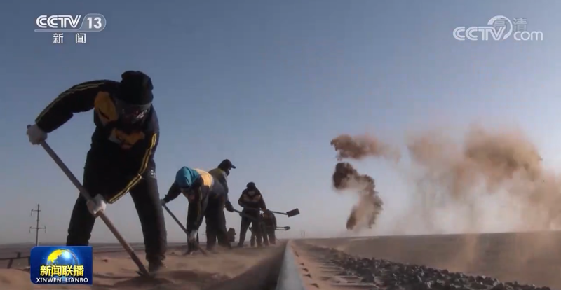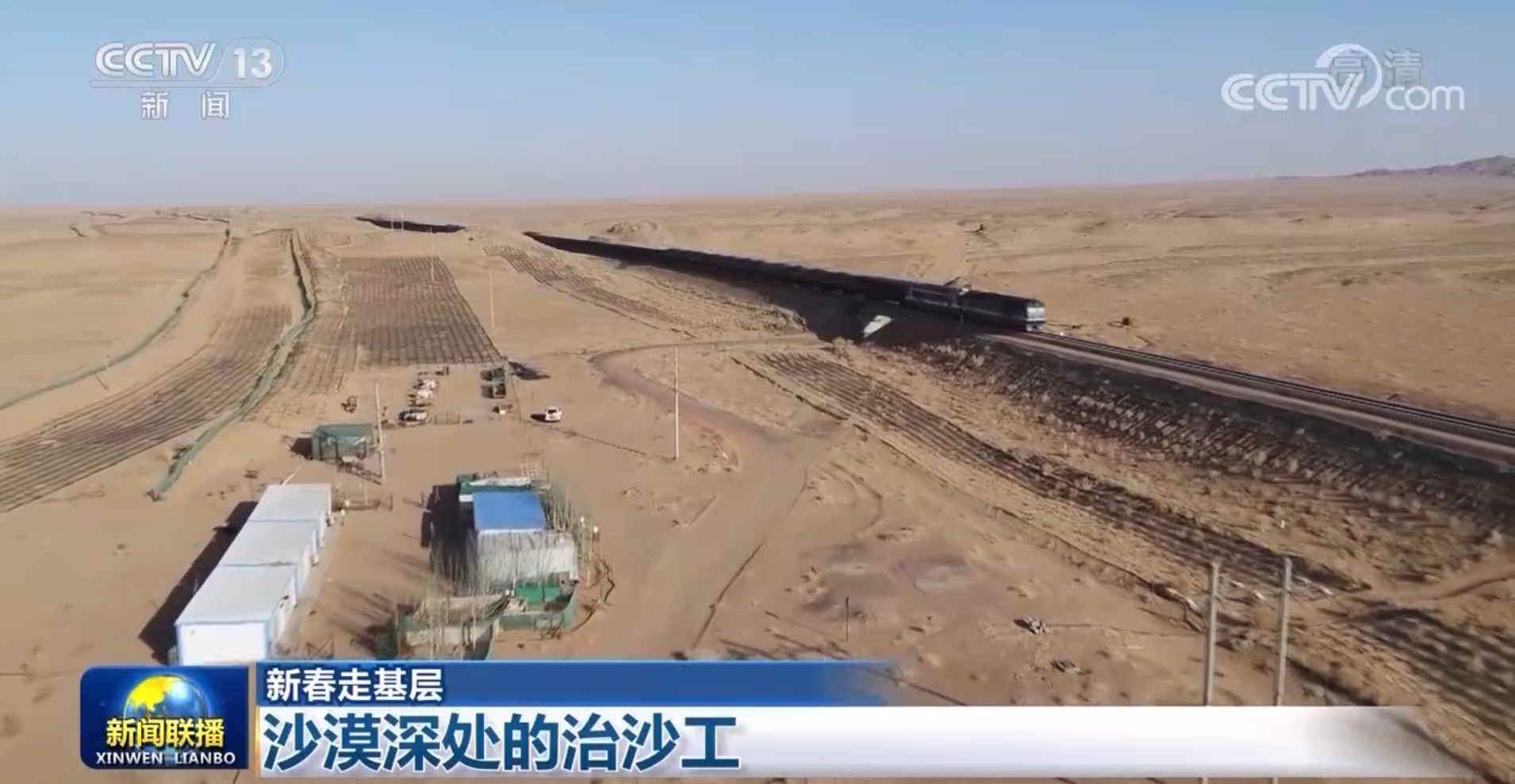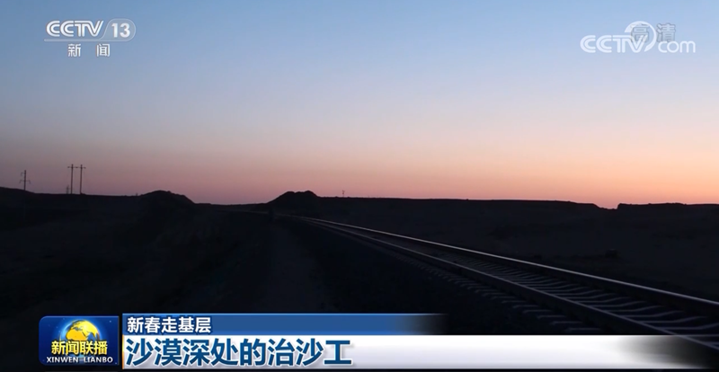 央视网消息(新闻联播):内蒙古临策铁路穿越400多公里沙漠,沿线有260公里风沙严重,轨道经常被沙子掩盖。为了治理沙害,铁路部门设置了11个治沙站,360治沙站就是其中之一。今年,这里有6名治沙工留守过年。