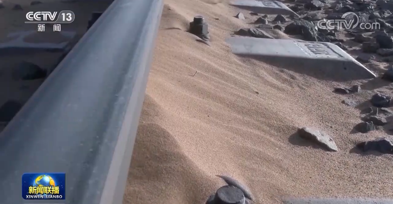 带上工具,赵勇一行马上驱车前往沙害地点。戈壁沙漠中的路崎岖难行,尽管只有30多公里,但皮卡车却走了1个多小时。治沙工到达沙害地点时,风力已经增强到了7级以上。此时,流沙已经覆盖了铁路的螺丝、轨枕和扣件。若不及时处理,随时可能升级为最严重的1级沙害,掩埋整个钢轨,甚至导致列车脱轨倾覆。