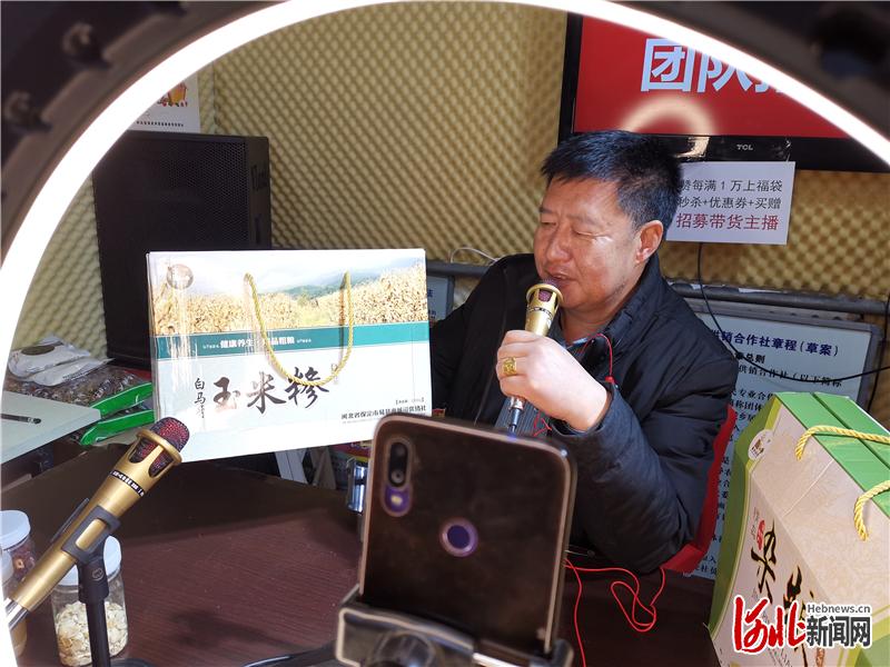 图为赵志勇在农产品直播基地介绍当地山货。河北日报记者李连成摄