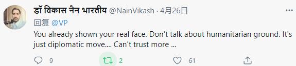△印度网友称,哈里斯此举不过是外交辞令,无法信任。
