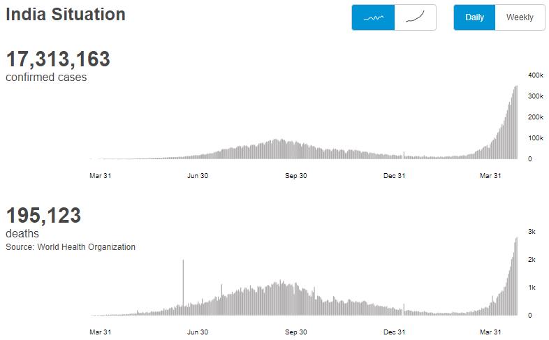 就在印度民众还在疫情中苦苦等待美国的援助时,印度的疫情已经发展到了令人恐惧的境地。