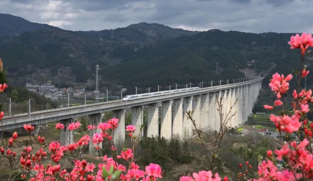 发现团乘坐高铁来到麻城市,登上龟峰山,百里杜鹃花开,一路繁花似锦,宛如一幅“千峰叠起嶂,杜鹃花似海”美丽画卷,令过往旅客沉醉。位于大别山下的合武高铁沿线的杜鹃竞相绽放,缤纷绚烂。
