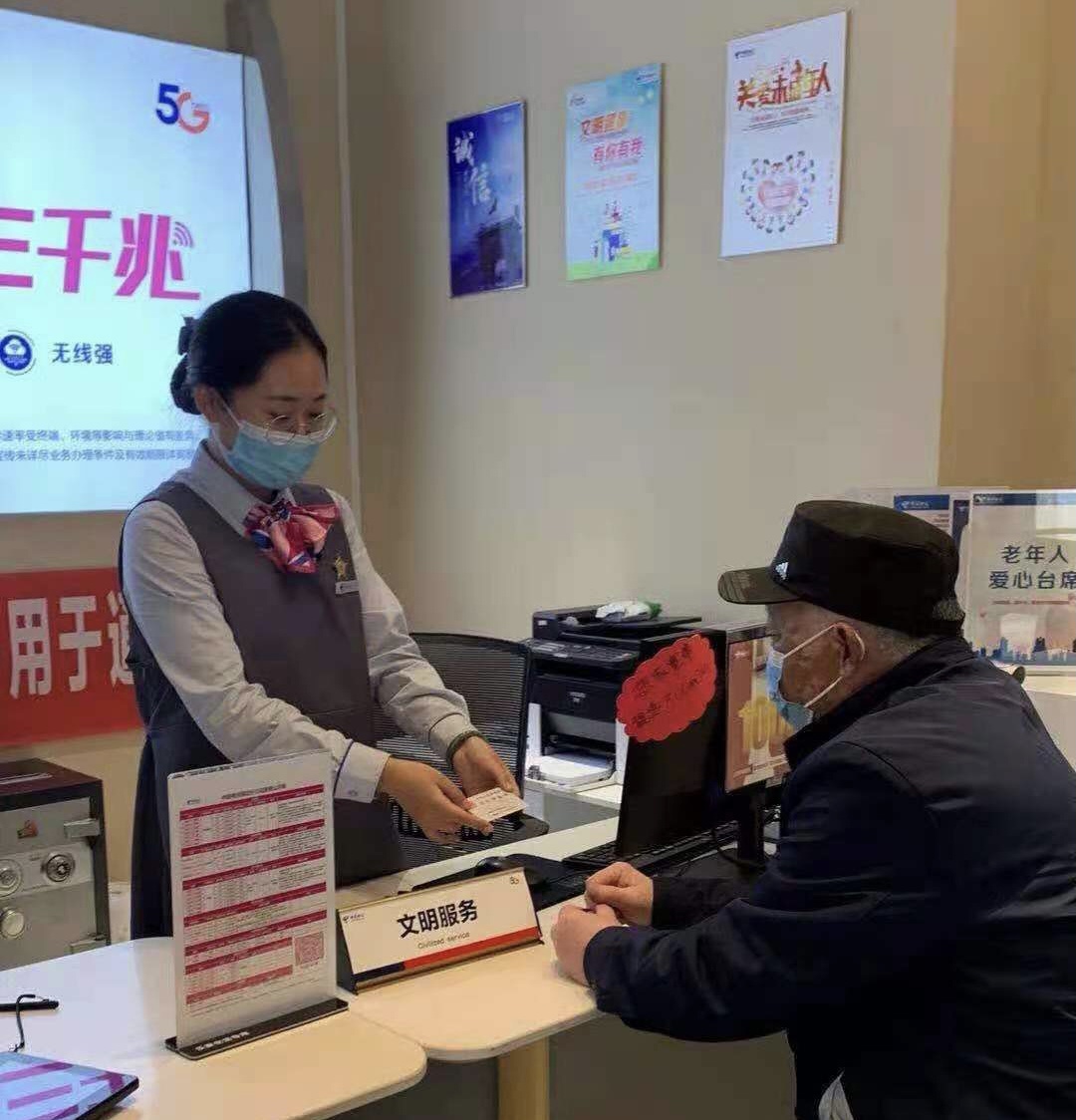 抵达电信七一路营业厅后,王蕾为老人办理了补卡业务,协助其将手机卡安装好。刘老先生第一时间给家里孩子打电话报平安。老人的女儿得知此事后,连连为王蕾的服务道谢。