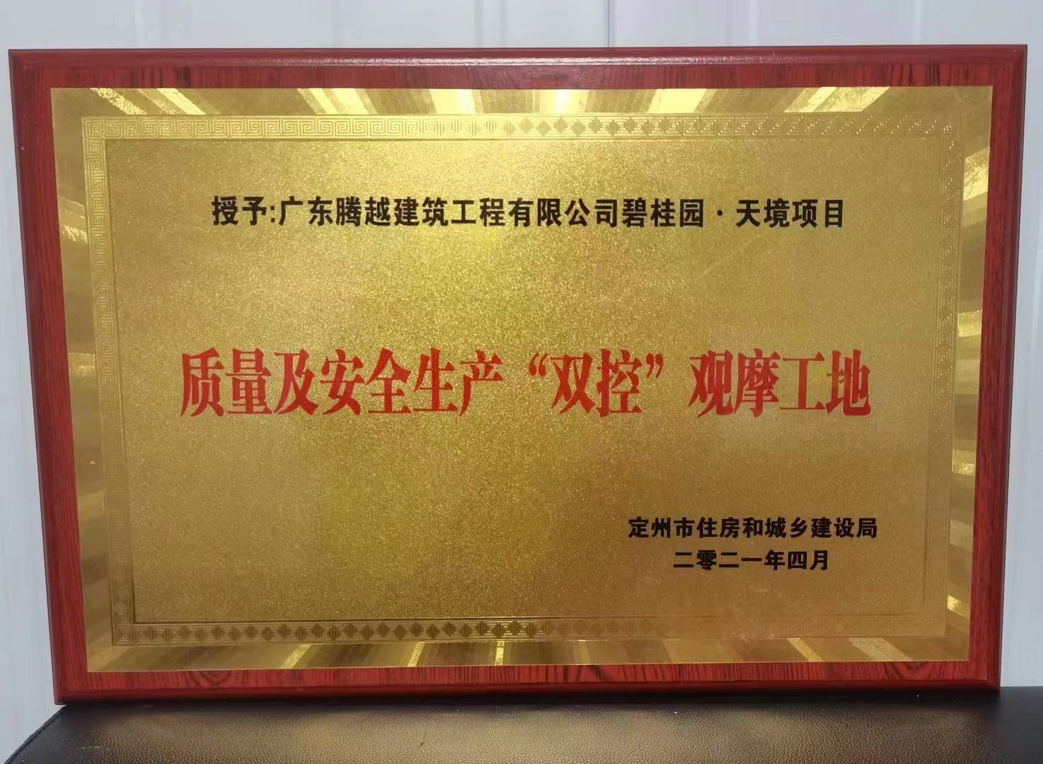 据介绍,本次观摩活动由定州碧悦房地产开发有限公司和广东腾越建筑工程有限公司共同承办。天境项目自2020年8月开工以来,一直遵循碧桂园集团“安全第一,以人为本”的安全生产指导方针。施工过程坚持高标准管理、高质量施工,坚持红线管理,被定州市住建局授为市质量及安全生产“双控”观摩工地。