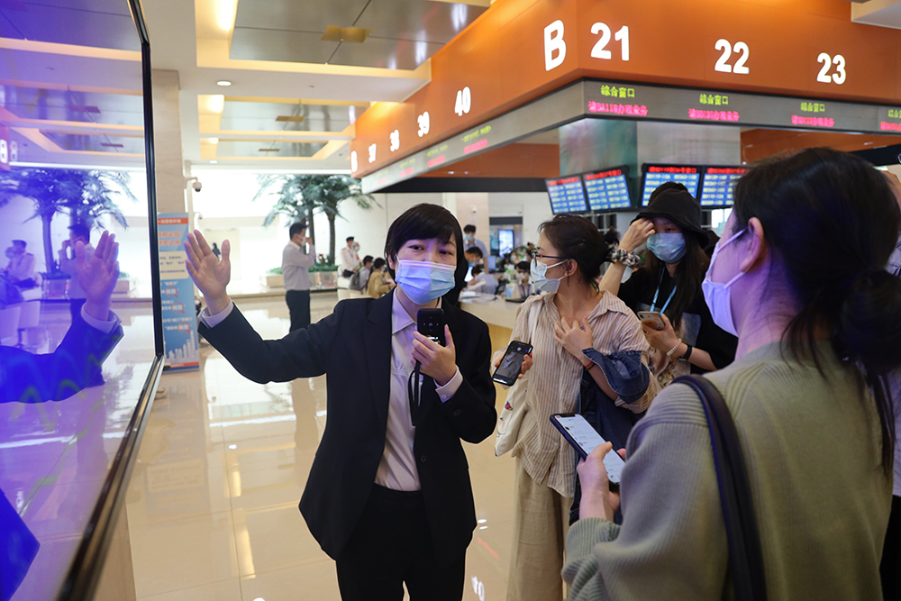 在浦东新区行政服务中心,黄海霞介绍情况。 施丰奕 摄