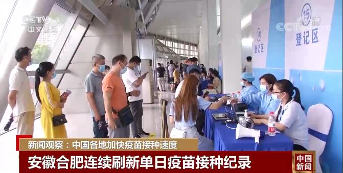 13日、14日两天,安徽合肥连续刷新单日接种量最高纪录。15日,在合肥市最大的方舱疫苗接种点,现场30个接种台全部开放。