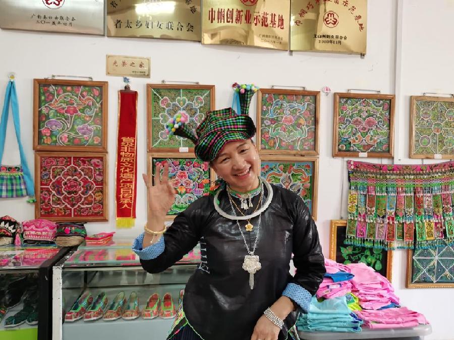 云南省级非物质文化遗产项目“壮族刺绣”代表性传承人张凤仙。李纹秀摄