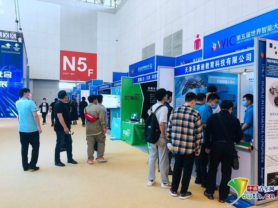 中国青年网北京5月20日电(记者 李华锡)5月20日,第五届世界智能大会智能科技展开幕,展览采取线上加线下展览模式,同步展示。共设置六个展区和3个智能体验区,涵盖科研与应用、智能制造、智慧城市和交通、智慧生活等智能产品和技术。线下展览和体验在天津梅江会展中心,展览和体验面积4.8万平米,参展企业和机构220多家,引来市民参观。