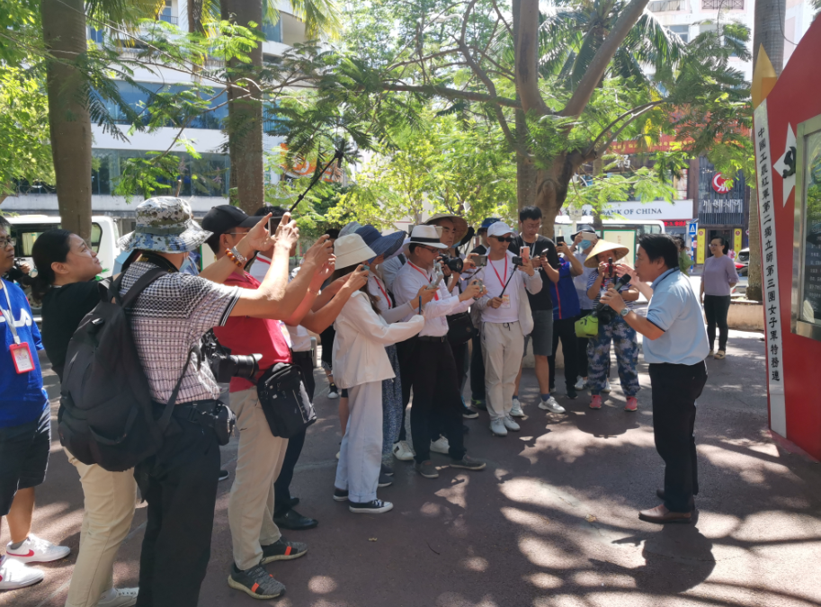 采访团聆听红色娘子军庞琼花后人庞启江介绍