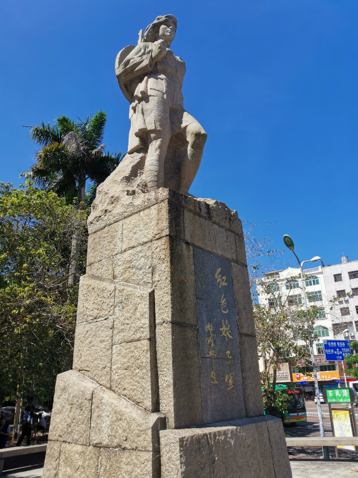 “向前进,向前进,战士的责任重,妇女的冤仇深,古有花木兰替父去从军,今有娘子军扛枪为人民……”,红色娘子军,是国人心中抹不去的一份红色记忆,伴着脑海中浮现的影视作品中的形象,采访团来到红色娘子军的故乡琼海市南门的街心公园,这里矗立着著名的“红色娘子军”雕像。