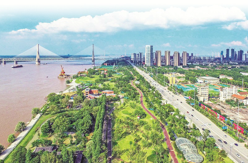 党的十八大以来,党中央高度重视长江经济带绿色发展,青山区贯彻落实中央的长江大保护政策,狠抓“四水共治”,开展岸线码头整治和治污工作。其中,青山江滩的改造成为长江大保护的经验示范模式。总投资28亿元修建的全省首个“海绵江滩”——青山7.5公里江滩,独有的绿色缓坡和地下空间相结合的功能,让城市防洪与城市景观实现无缝对接,青山江滩也改变原有的单一防洪功能,成为武汉市绿化率最高的江滩公园,是居民休憨嬉戏和享受美景的重要场所,极大地提升了居民群众的幸福感、获得感。