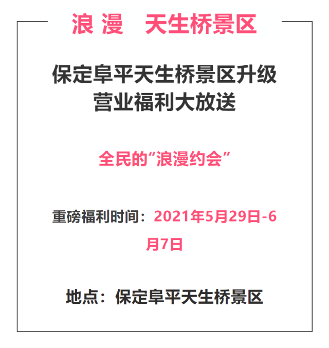 门票免费送~2021保定阜平天生桥景区升级营业,约起来!