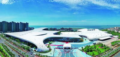 5月6日,首届中国国际消费品博览会在海南省海口市开幕。图为无人机拍摄的首届消博会举办地海南国际会展中心。新华社发