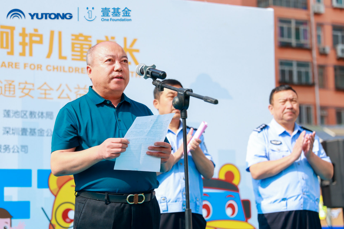武文革在致辞时表示:“多年来,我们一直高度重视交通安全宣传教育,积极落实上级决策部署,构建了多层次、多元化交通安全教育体系,有效提升了师生交通安全意识。此次宇通壹基金儿童交通安全公益行活动将实用又有趣的交通安全教育方案带到我校,用体验式教育为学生全面普及交通安全知识,拓宽了我们的视野,革新了我们的理念,更为我校创办特色平安校园提供了新契机。”