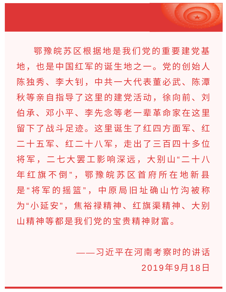 河南新县是将军的摇篮。土地革命时期,这里是黄麻起义的策源地、鄂豫皖革命根据地首府所在地,先后诞生了红四方面军等主力红军,走出了多位叱咤风云的共和国将军。
