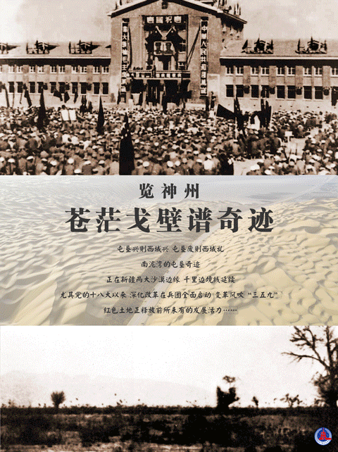 1949年,新疆和平解放,改编自三五九旅的第一野战军第二军步兵第五师,随王震将军“凯歌进新疆”,带着“南泥湾”的屯垦经验,奔赴苍茫的塔克拉玛干沙漠北缘。