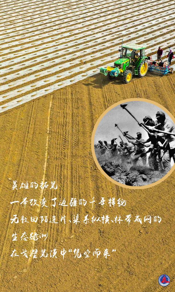 英雄的部队,就此扎根大漠,整编为新疆生产建设兵团农一师(后更名为第一师)。而英雄的拓荒,一举改变了边疆的千年样貌。无数田陌连片、渠系纵横、林带成网的生态绿洲,在戈壁荒漠中“凭空而来”。