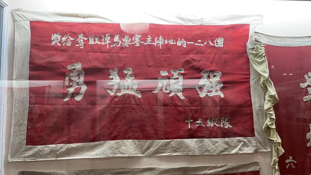 “战争年代,物资匮乏。为了支援人民军队打胜仗,老百姓纷纷有力出力,捐款捐物。”太原解放纪念馆讲解员曹艾洁说,这面红底白边的旗,是奖给在解放太原战役中作战勇猛的一支部队的,旗面却是用老百姓捐的被子面做成的。