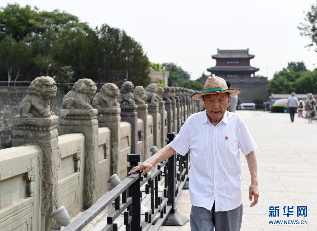 头顶遮阳帽,漫步卢沟桥,触摸石狮子,作为“七七事变”的亲历者,90岁的“光荣在党50年”纪念章获得者、“时代楷模”荣誉获得者郑福来老人,为了让后人铭记那段刻骨铭心的历史,仍坚持在炎炎夏日中,向来往的游客介绍他眼中的抗战故事。
