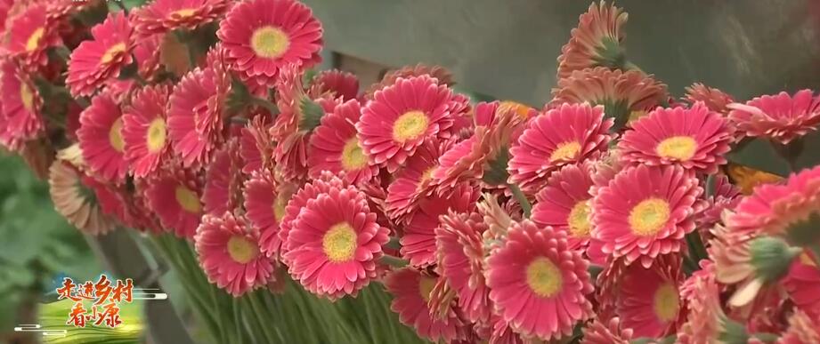 总台记者 刘文杰:那现在大家可以看到,在我的周围都是盛开的鲜花,此时此刻,我是沉浸在一片鲜花的海洋里。在我旁边的架子上摆放的就是刚刚采摘的非洲菊,这里是非洲菊种苗繁育和研发基地,这些鲜花都是长在温室大棚里的。说到这个温室大棚可不简单,它可以实现全智能一体化控制。比如,大棚里的温度高了,会自动启动喷淋设备实施降温;太阳光太强烈了,可以及时遮阳设备;鲜花需要浇水,需要补充营养液了,也都是自动化。