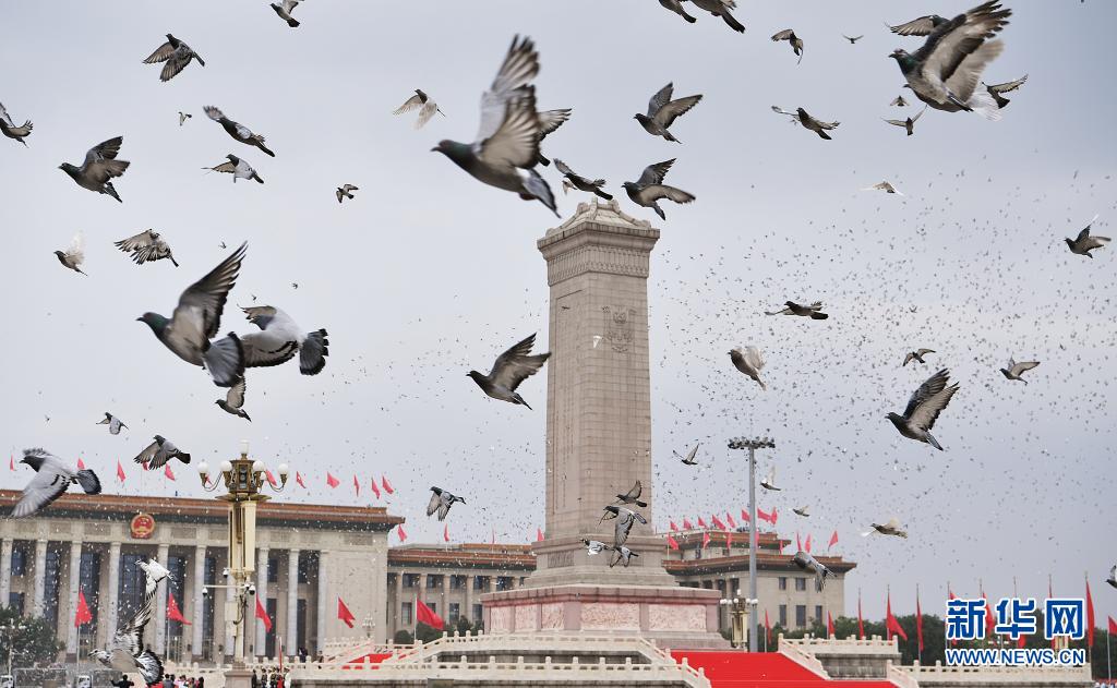 7月1日上午,庆祝中国共产党成立100周年大会在北京天安门广场隆重举行。这是庆祝大会现场和平鸽展翅高飞。新华社记者 孙非 摄