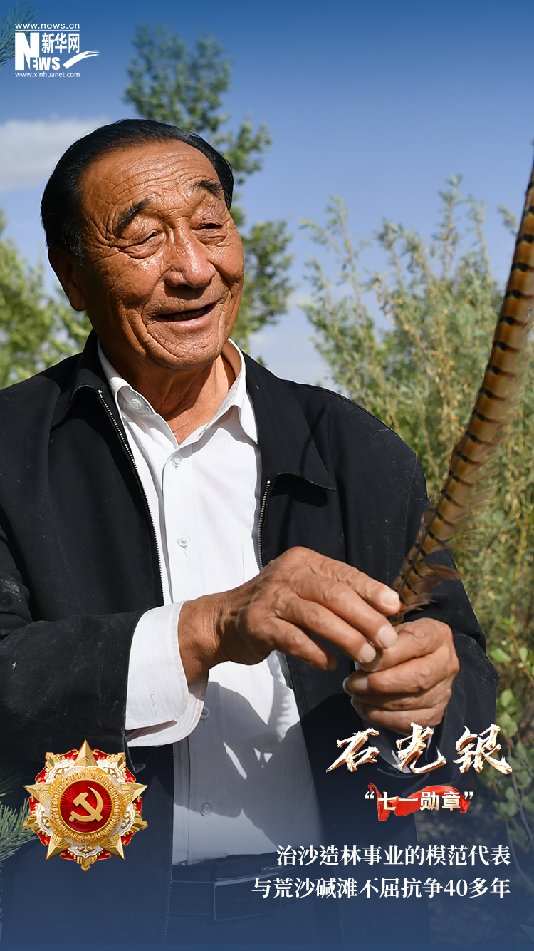 在陕西,有一位普通的党员,就活成了白杨的样子。他带领当地群众,与荒沙碱滩不屈抗争40多年,筑起了长达百余里的“绿色长城”,彻底改变“沙进人退”的恶劣环境。他就是“七一勋章”获得者石光银。