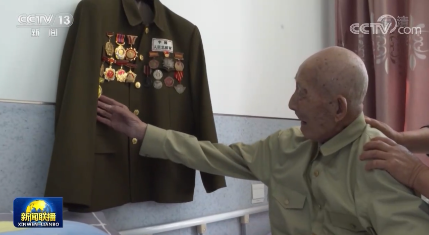 在辽宁丹东市光荣院,我们见到97岁的孙景坤,老人的床边挂着一件军装,上面的军功章、纪念章格外醒目。
