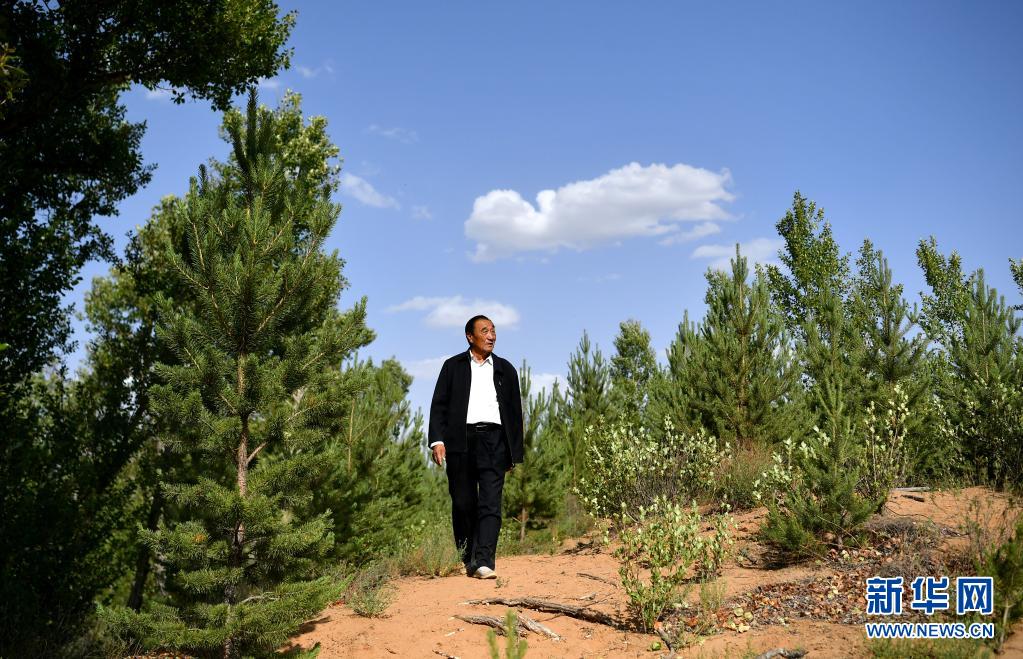 石光银在自己最早治理的“狼窝沙”林地里(2020年5月30日摄)。新华社记者 刘潇 摄
