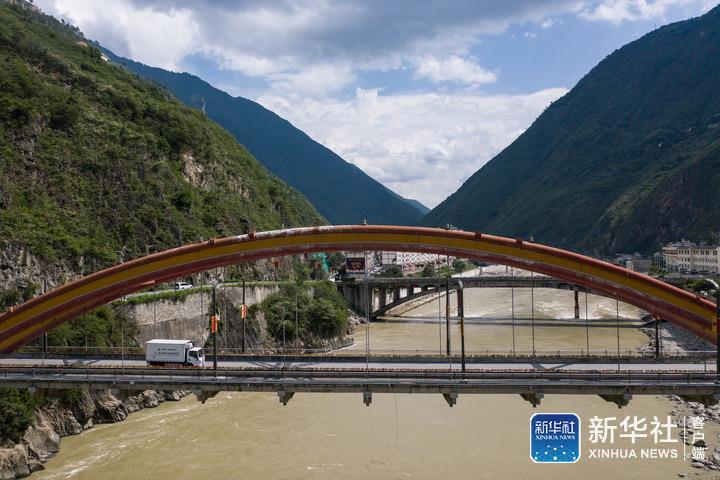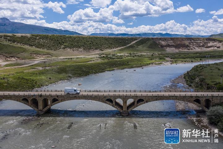 ↑7月22日,从北京一路驶来的疫苗冷链车经过大渡河。