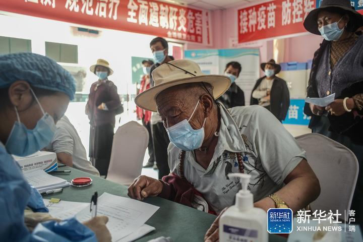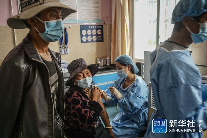 ↑7月24日,在四川甘孜州稻城县疫苗接种点,当地群众在接种疫苗。