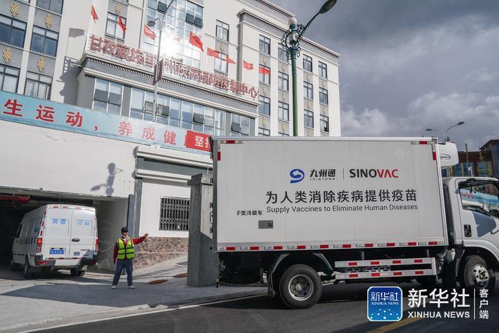 ↑7月22日下午,运送疫苗的冷链车历经40多个小时后到达四川甘孜藏族自治州疾控中心。