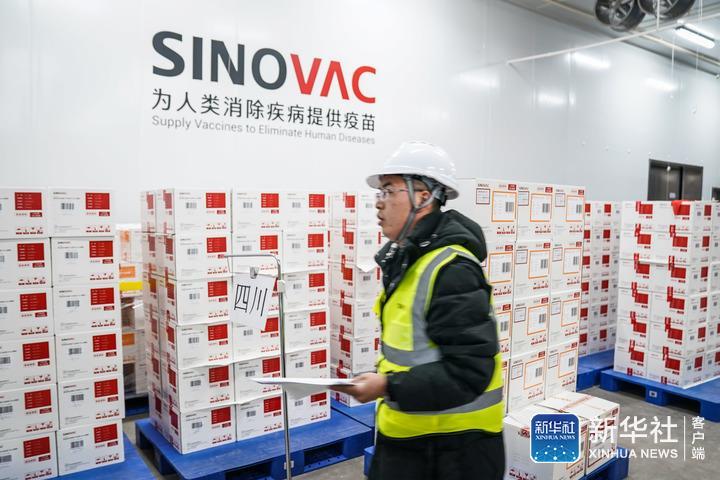 ↑7月20日,在北京科兴疫苗冷库内,工作人员为发往四川的疫苗“备货”。