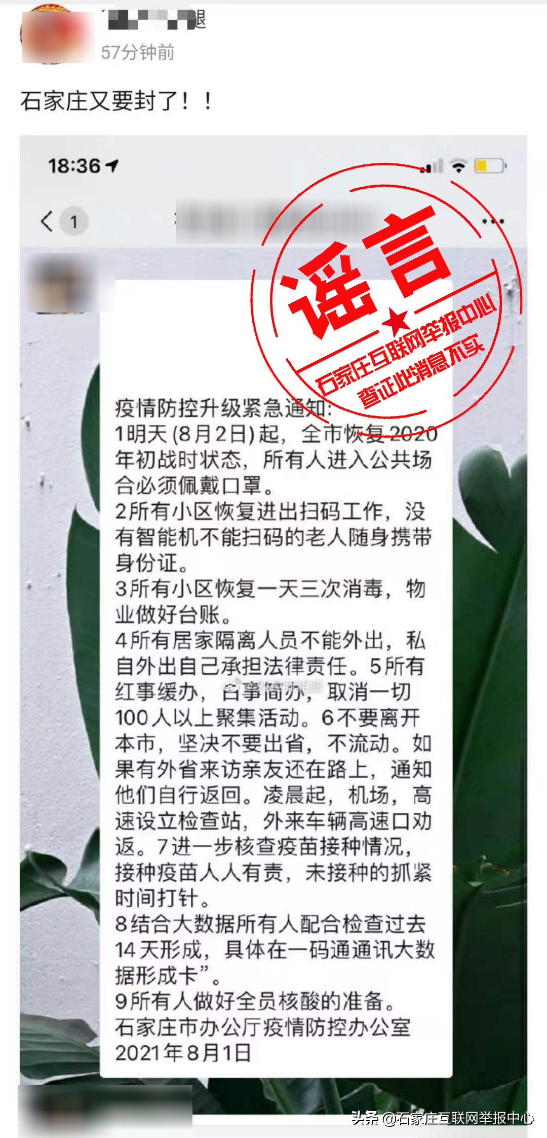 ①石家庄封城,恢复战时状态,防疫管控措施升级?假的!