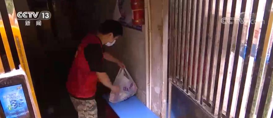 据介绍, 该封控楼栋共有66户155人。为了保障居民正常生活,社区采取团购与网购相结合的方式,居民自助下单,快递员送到小区后,由工作人员送至封闭楼栋内操作台上,再微信通知住户下楼,保证配送无接触。