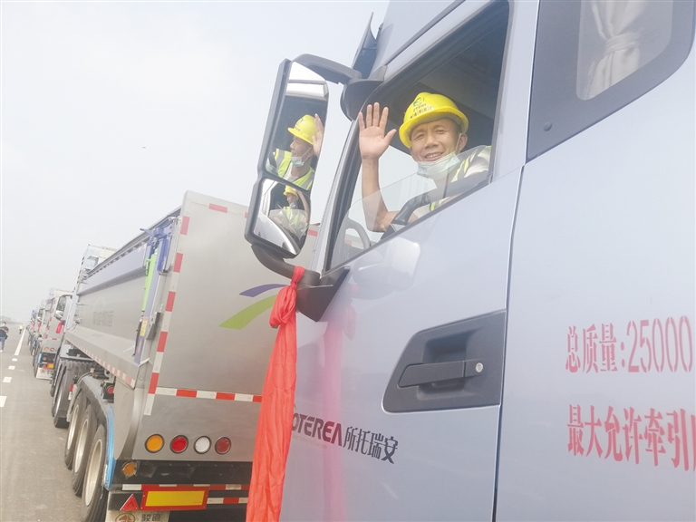 这是当日“容易路氢能重卡示范线投运仪式”上,一个令人难忘的场景,值得纪念的一天。