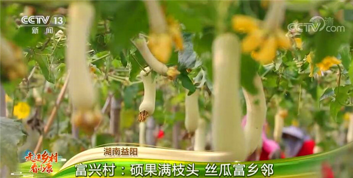 您现在来到的是湖南省益阳市沙头镇富兴村。8月的骄阳下,丝瓜硕果满枝,在丝瓜生长初期,如果外形弯曲了,瓜农就用塑料袋装上泥土系在丝瓜尾部,靠重力来影响丝瓜的长度和直度。因为颜值高,再加上皮薄肉厚、汁多味甜,市场供不应求,每亩瓜田的收益有2万多元。