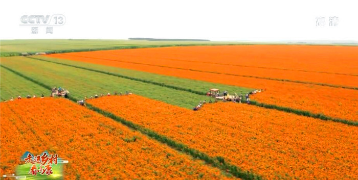 央视网消息:您现在看到的是黑龙江省勃利县东岗村,这里的300多亩万寿菊正迎来今年的第二茬采摘。在勃利县有着这样的说法“一亩万寿菊,两亩大豆账,三亩玉米棒”。勃利县万寿菊种植面积达2万多亩,作为提取叶黄素的重要原料,这里的万寿菊已走出国门,直接带动当地2000多名农民从事相关产业,年人均增收7000多元。