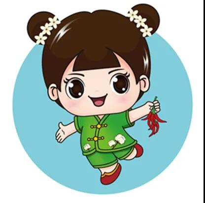 康康以梨花为发饰,代表博野县果木、苗木种植产业,手中红彤彤的辣椒代表望都县"辣椒之乡"称号,衣服上棉花图案代表高阳县"纺织之乡"荣誉。